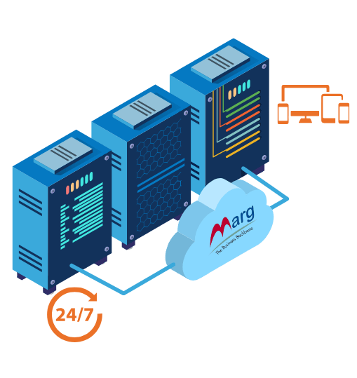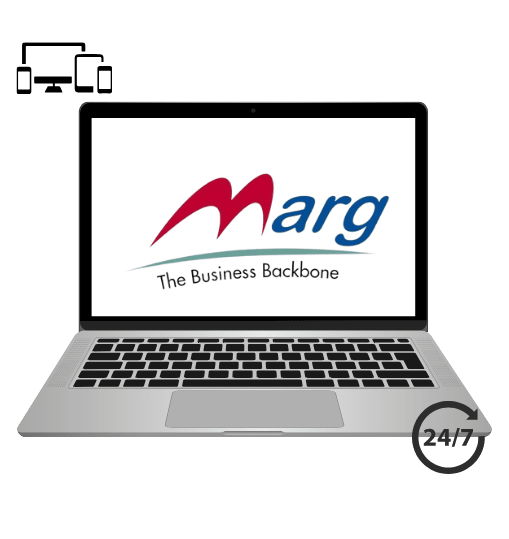 Marg hosted on cloud can be used from any device (Laptop / PC / Mobile)
