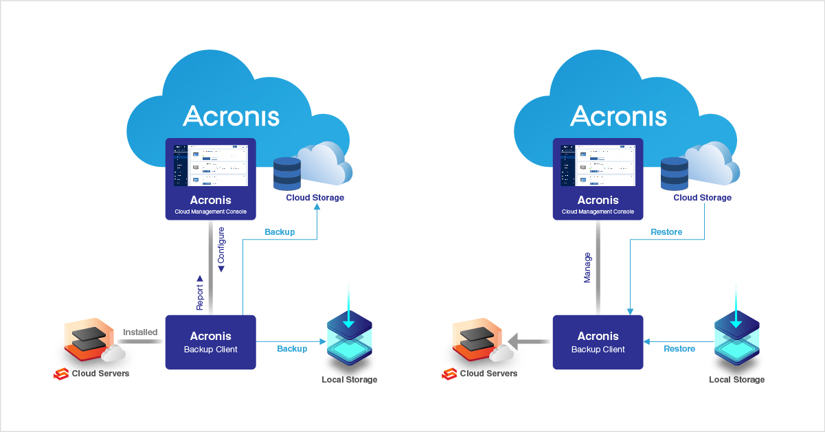 With Acronis cloud backup you get unparallel, tailored made backup and storage management solutions for any workload such as physical servers, VMs, PCs, business-critical applications, and many more.