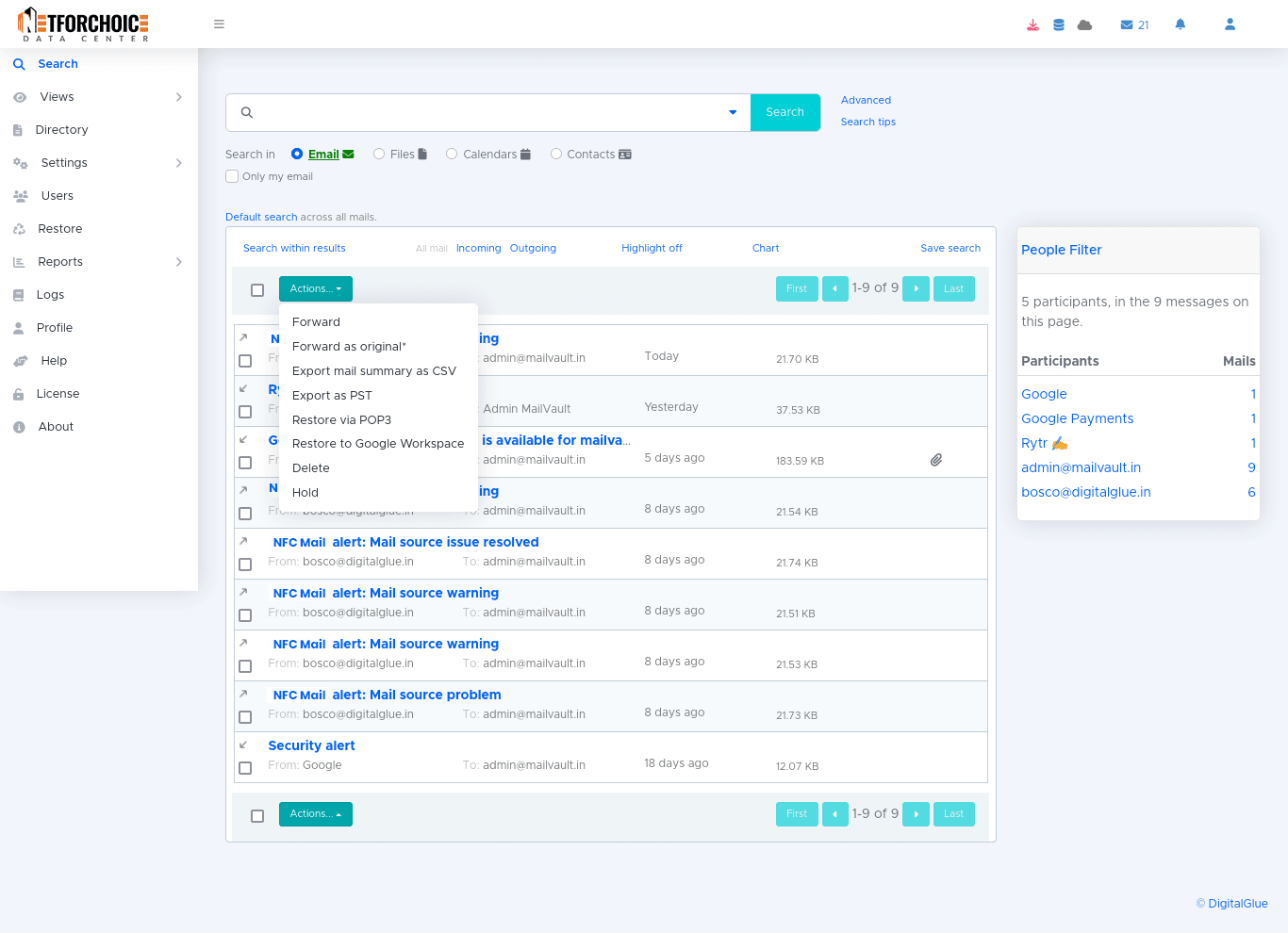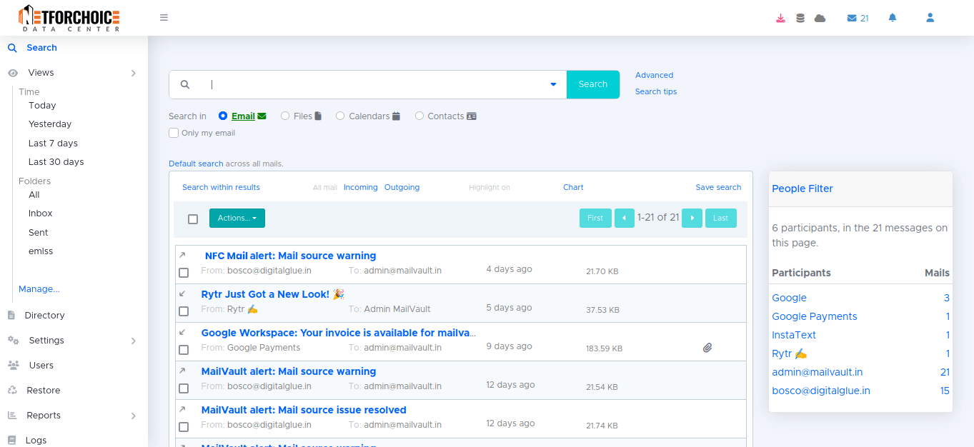 Safeguard your emails through automated backups and archiving, protecting against accidental deletion or system failures. NFC provides best email archiving software for business, cloud email, hosted email, enterprise email.